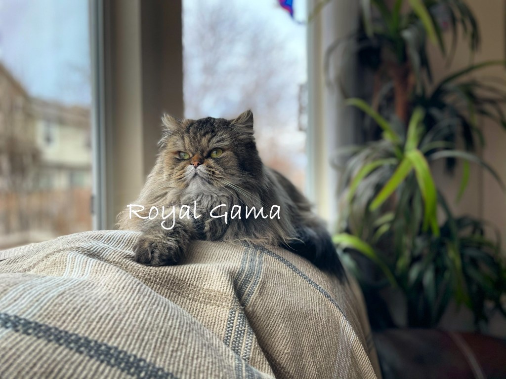 My Prim is a tortoiseshell Persian. This girl is our fluffiest kitty! The added smokiness in her coat gives her an extravagant look. She has a quiet, calm demeanor and she enjoys watching what you’re doing from a bit of a distance. We call Prim our guard cat because she likes sitting in one place for quite some time simply watching. She likes to be gently petted and enjoys peace and quiet. If you get really close to her face, she shows her affection by giving you a few licks;)
