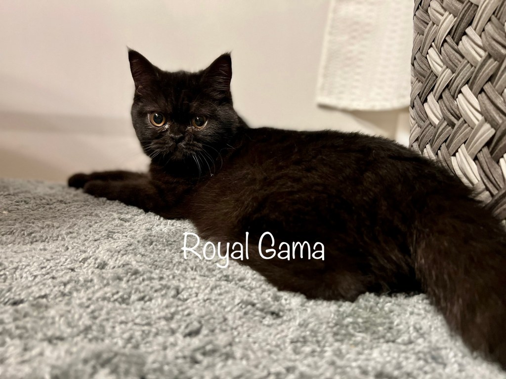 My sweet wild child Luna is a black Exotic. She’s a short haired Persian so her coat is super easy to maintain and doesn’t get matted. Luna is a beautiful girl with a beautiful personality. She has a silky smooth black coat and beautiful hazel eyes. Luna purrs constantly! All you have to do is look in her direction and say her name and that motor starts running. Luna is our most energetic kitty and likes to zoom around the house. She has this happy personality and is always doing something. She has a favorite toy mouse and plays fetch with it! Luna is kind, affectionate, smart, and so loyal. She makes life oh, so fun.