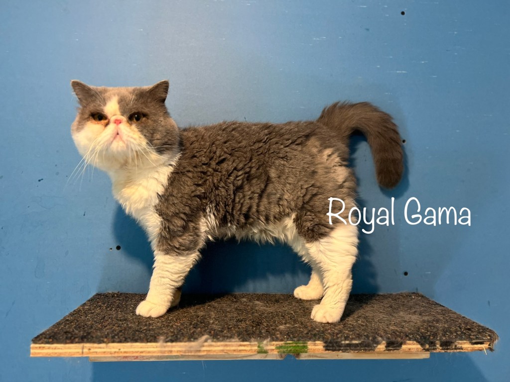 My chunky boy Stormy is a Bicolor Exotic Shorthair. Stormy is a friendly and attention seeking boy. He head butts you to remind you to pet him every second you see him. Stormy is kind, extremely affectionate, and has a sweet voice. This guy has a very full coat and a nice fluffy tail. He likes nothing better than spending time with his favorite humans and our female kitties;) He is a wonderful cat and we are so happy to have him as a part of our family!